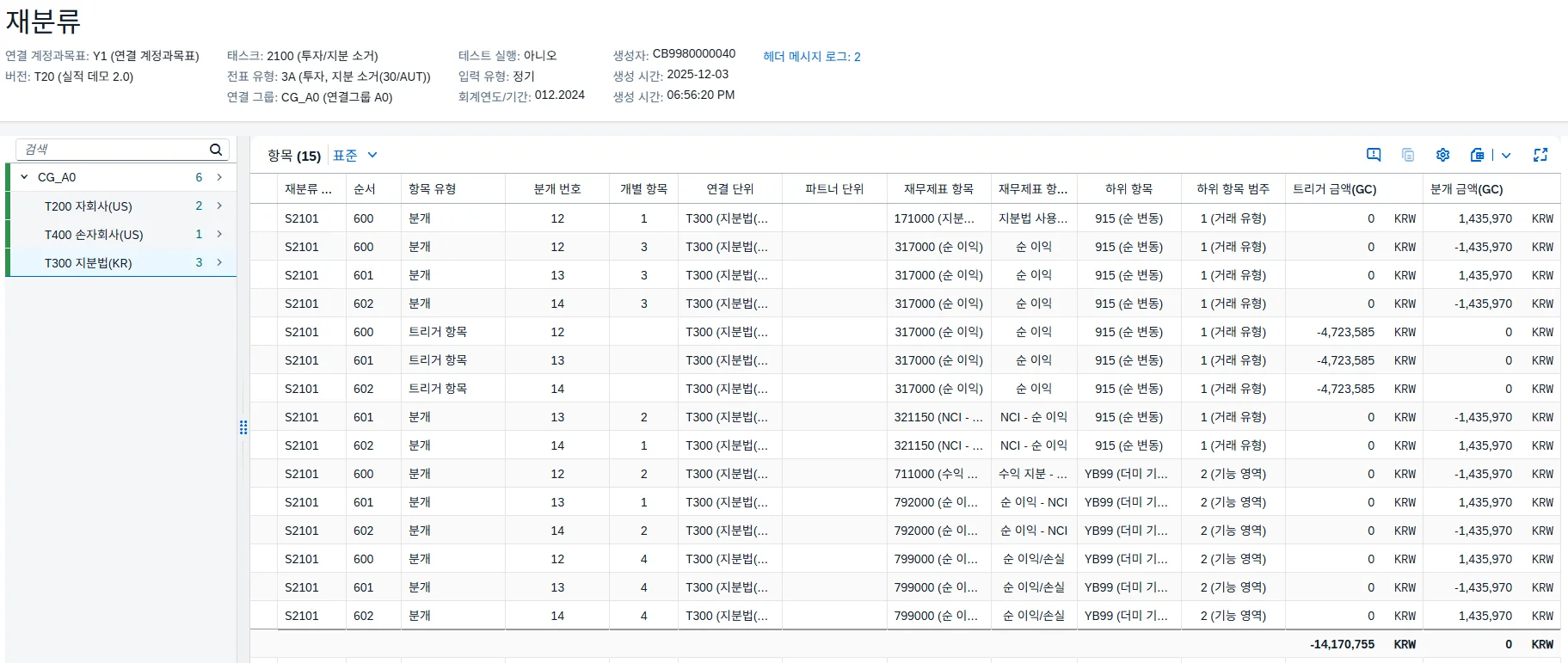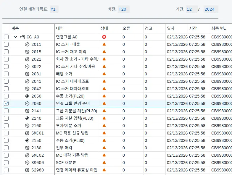 연결 그룹 변경 준비 태스크를 실행하면, 지분법 대상 법인의 재무제표를 일괄 취소하는 추가 전표를 생성합니다.