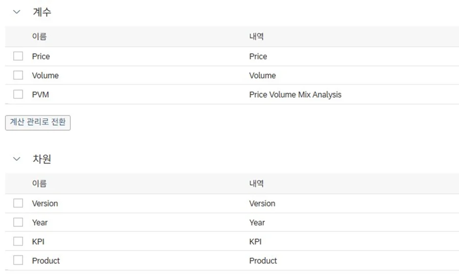제품별 PVM 효과를 분석하기 위해 다음과 같이 계수와 차원을 설정하여 모델을 구성합니다.